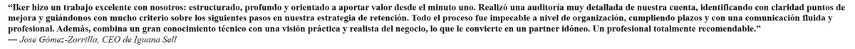 Nuestro servicio está pensado para un perfil de cliente muy específico, ya que esta es la única manera real (y honesta) de poder asegurar resultados.